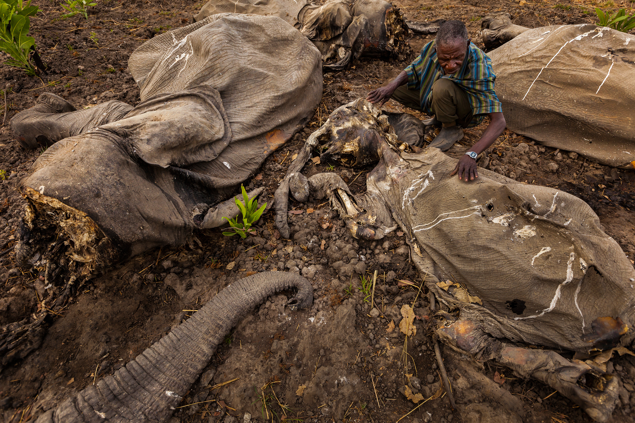 The aftermath of poaching; rangers are increasingly finding entire herds of slaughtered elephants. Photo credit: National Geographic.